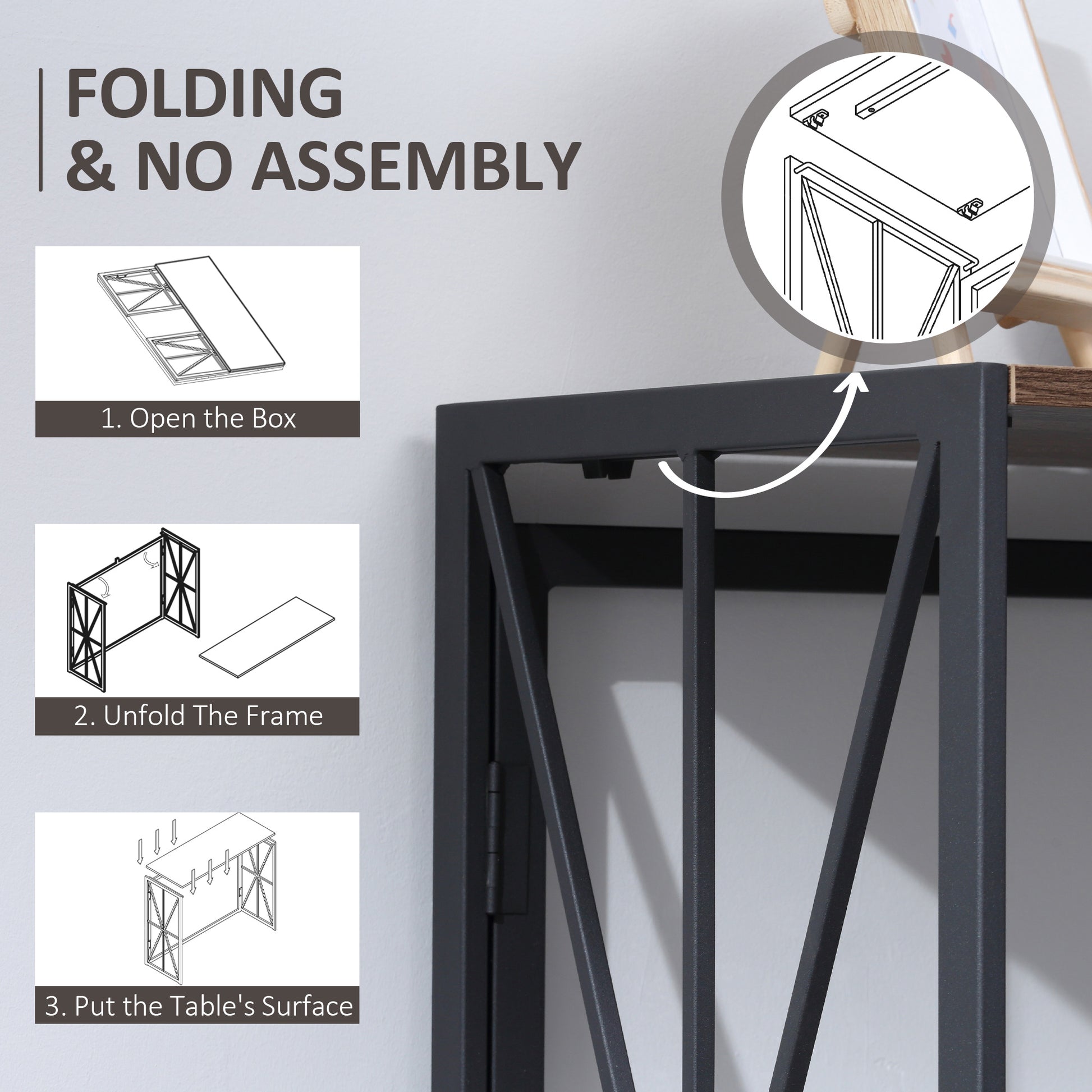 Foldable Console Table, Industrial Sofa Table, Narrow Farmhouse Table with Metal Frame for Living Room, Entryway, Foyer, Brown