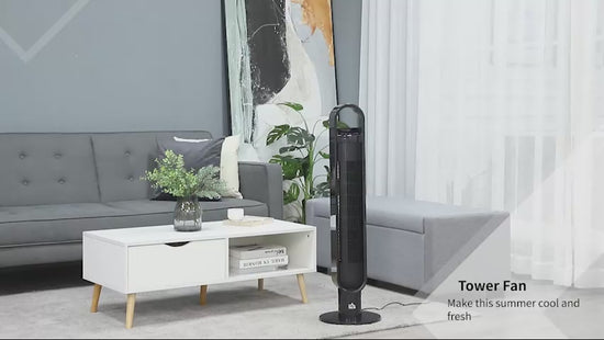 Freestanding Tower Fan Cooling for Home Bedroom with Oscillating, 3 Speed, 12h Timer, LED Sensor Panel, Remote Controller, Black 2