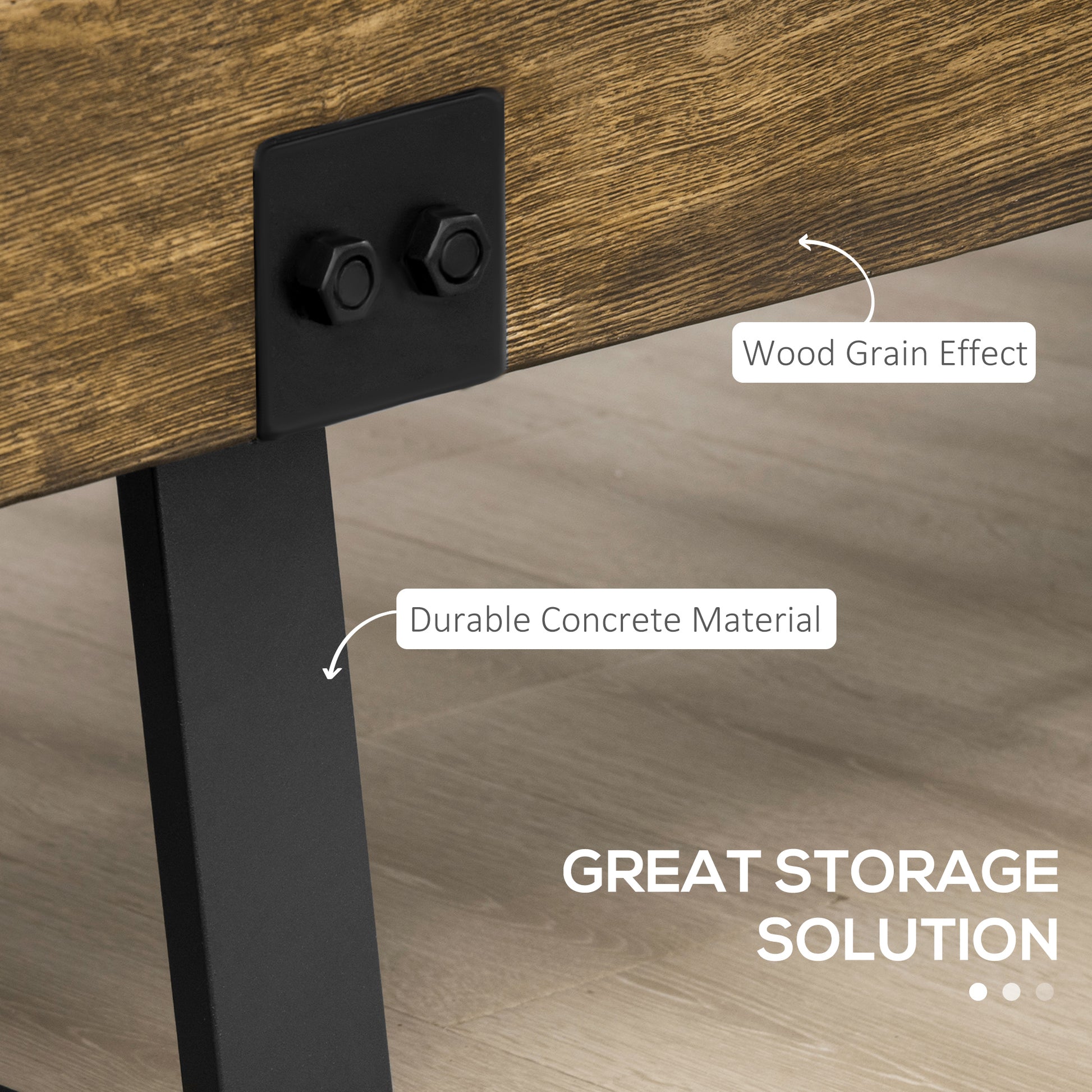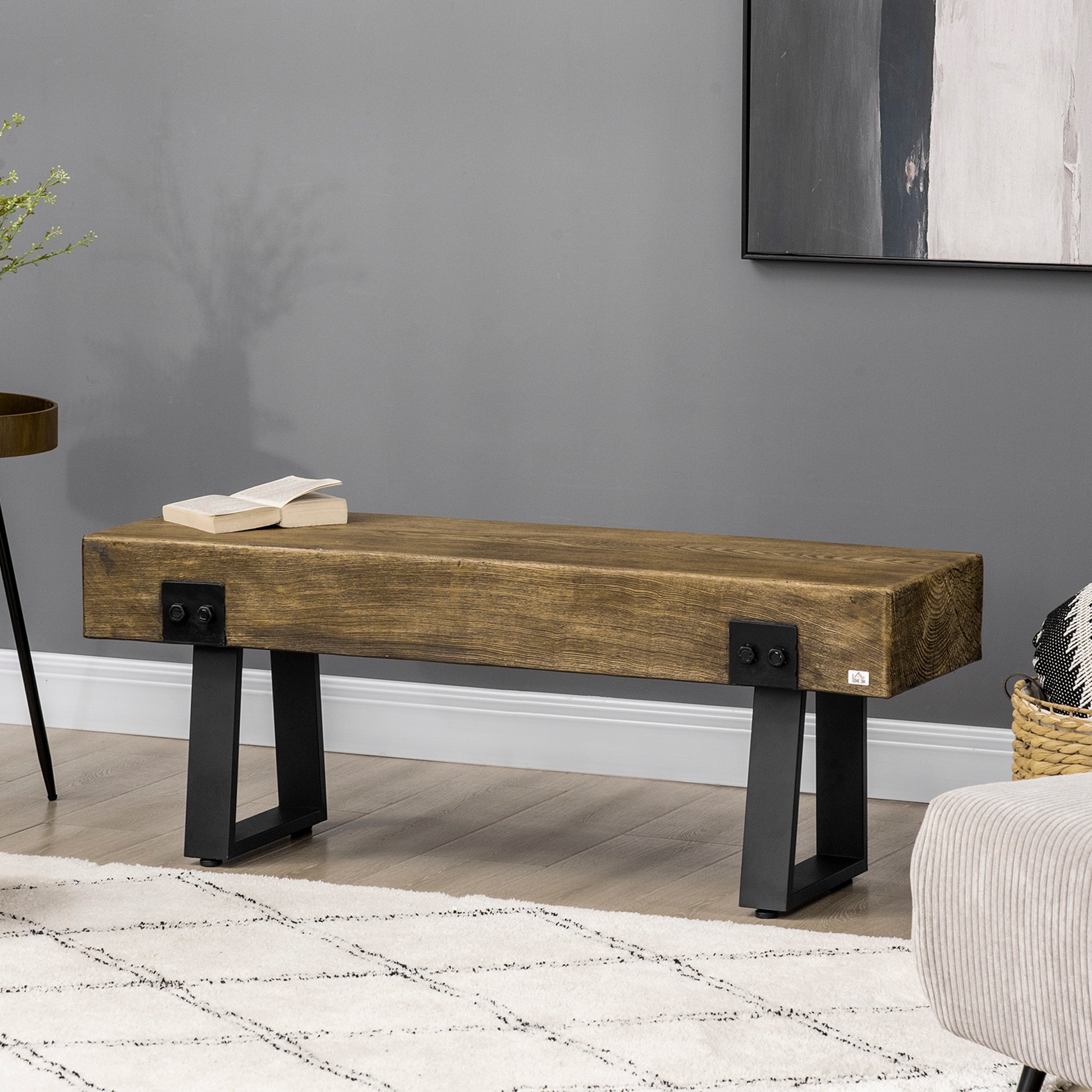 Garden Bench with Metal Legs, Rustic Wood Effect Concrete, Indoor or Outdoor Use for Patio, Park, Porch and Lawn, Natural and Black