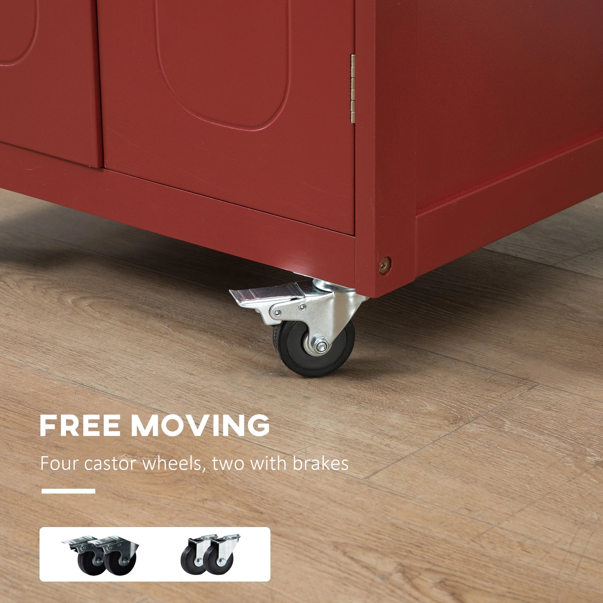Kitchen Cart, Small Kitchen Island, Stainless Steel Top Utility Trolley on Wheels with Storage Drawer for Dining Room, Kitchen, Red
