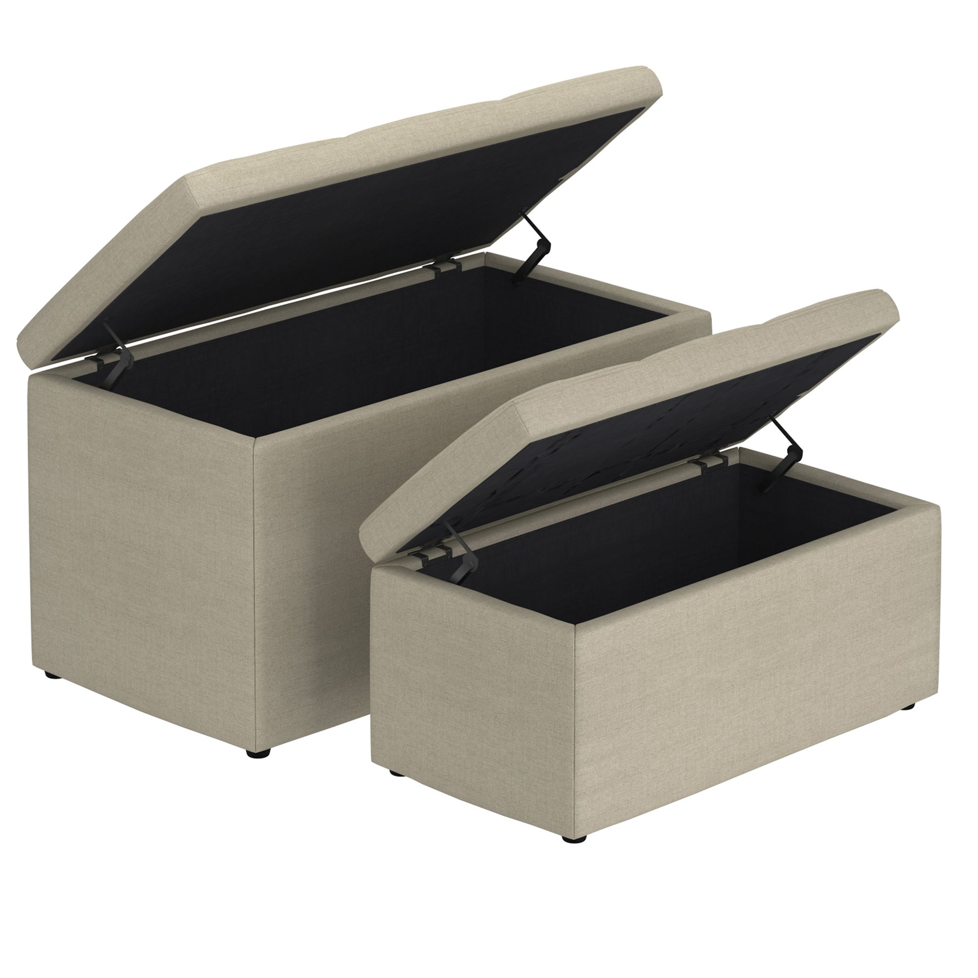 Levi 2pc Rectangular Storage Ottoman Bench Set in Beige Fabric