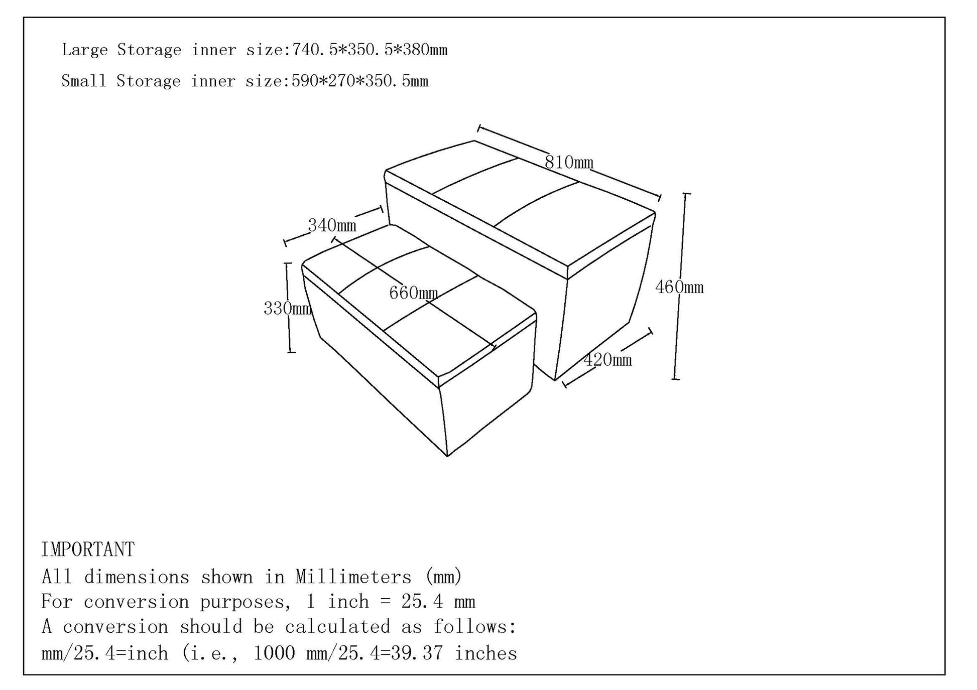 Two large capacity rectangular storage ottomans, one nesting neatly inside the other - convenience at its best! Keep the smaller stashed away for when you need extra bench seating or keep both pieces out and take advantage of places to stash games and blankets. Soft close lids are safe for little fingers, and neutral fabric upholstery will allow for an easy additional to any decor space. Spilt them up or use together as needed.