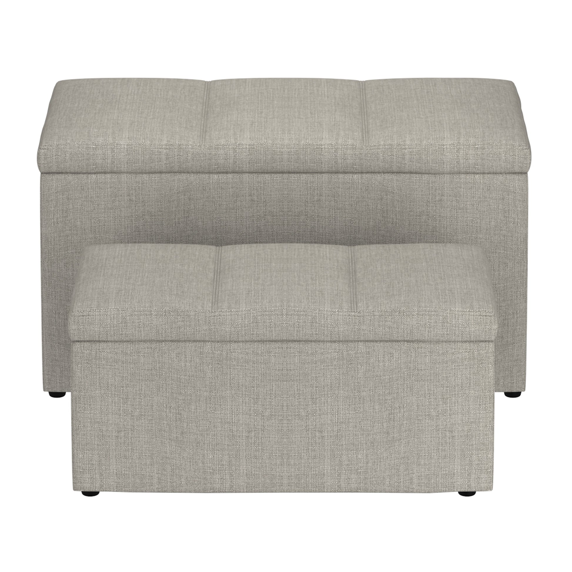 Levi 2pc Rectangular Storage Ottoman Bench Set in Light Grey Fabric