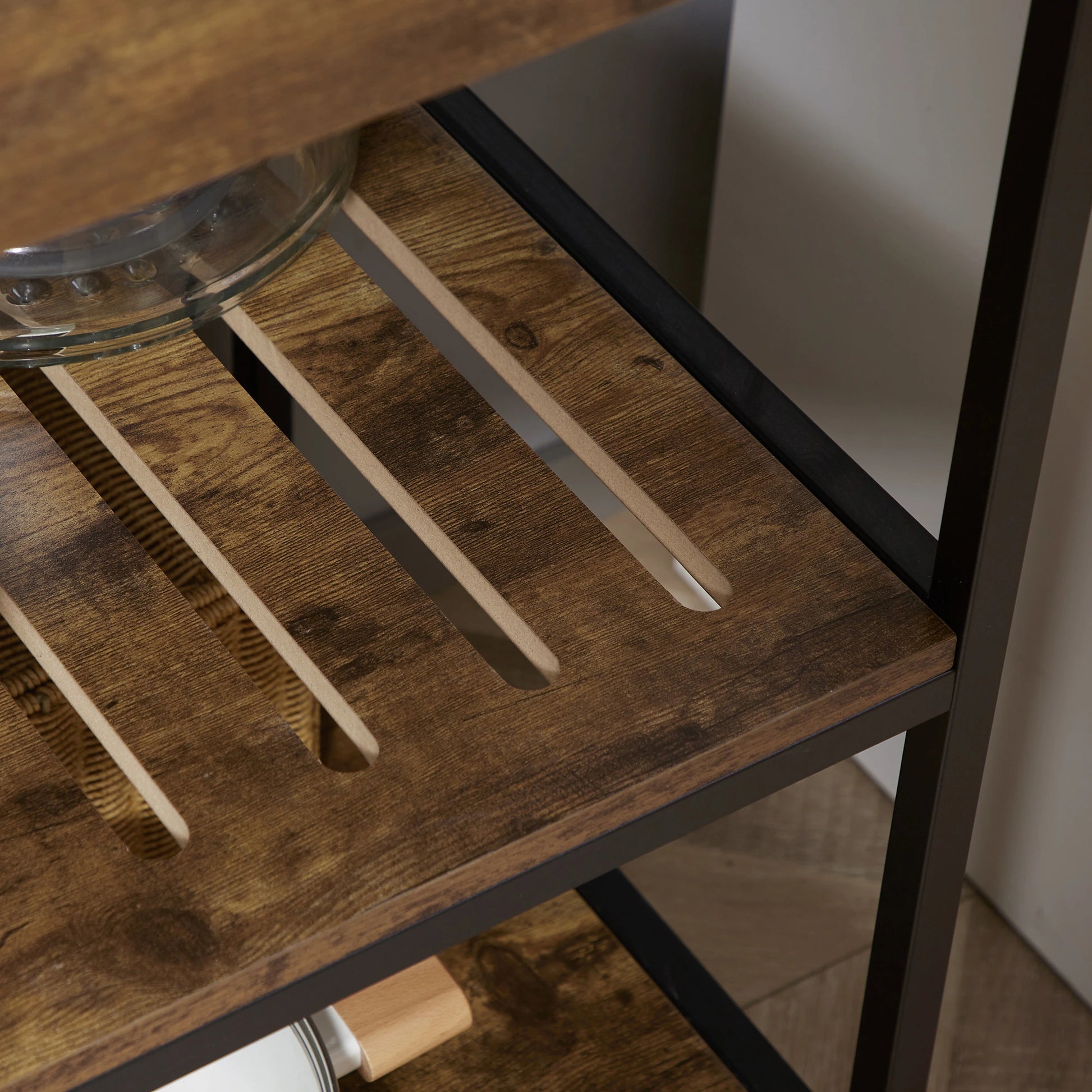 Sturdy Structure: Comes with particleboard and steel frame, this coffee cart is easy to clean and ensures reliability in your daily use.