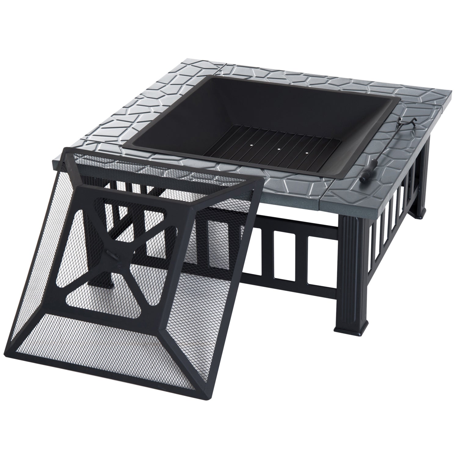 Whether you want to enjoy barbeque cuisine bedside the fire or an evening full of festivities, this wood fire pit from Outsunny is a perfect one and you can enjoy a safe and controlled campfire. With an attractive faux slate edged stone design on each side, this square pit with 33.75" in length providing plenty of room for you to gather around, chat and stay warm while enjoying the crackling glow of burning wood.