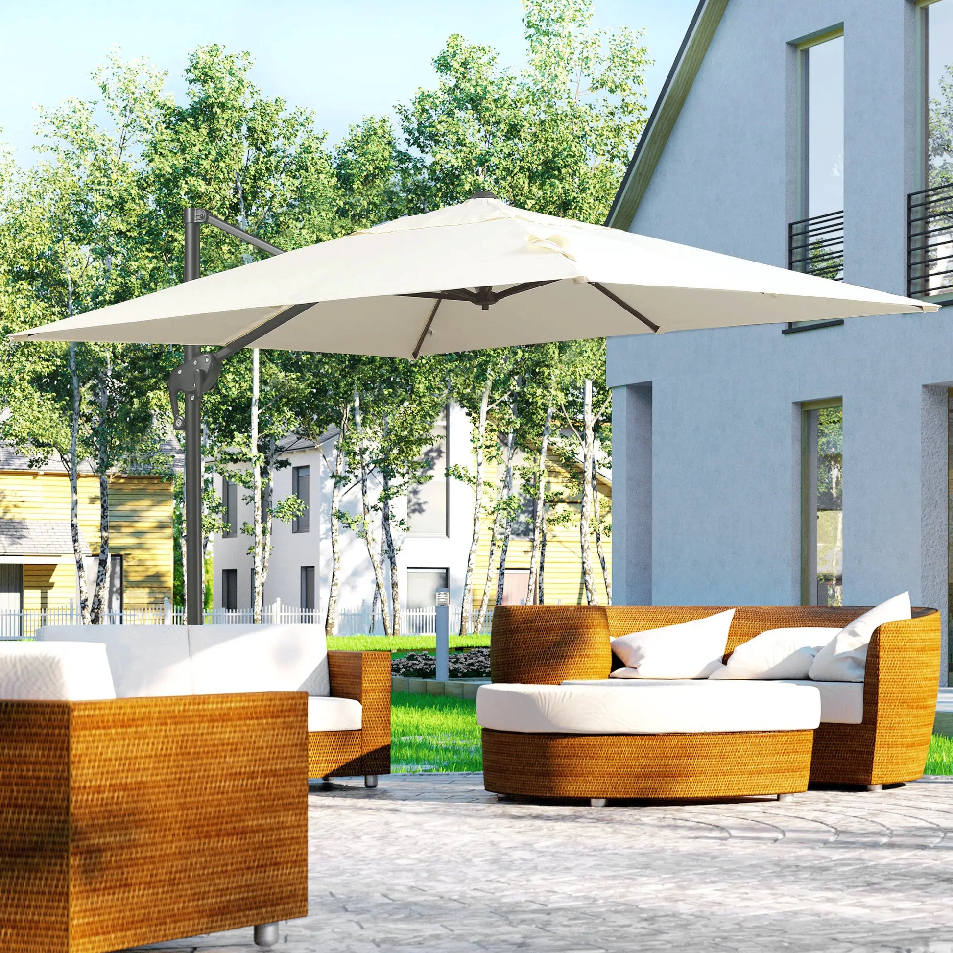 Outsunny 8'x8' Square Patio Hanging Offset Umbrella, Outdoor Cantilever Parasol w/ Cross Base, Cream White