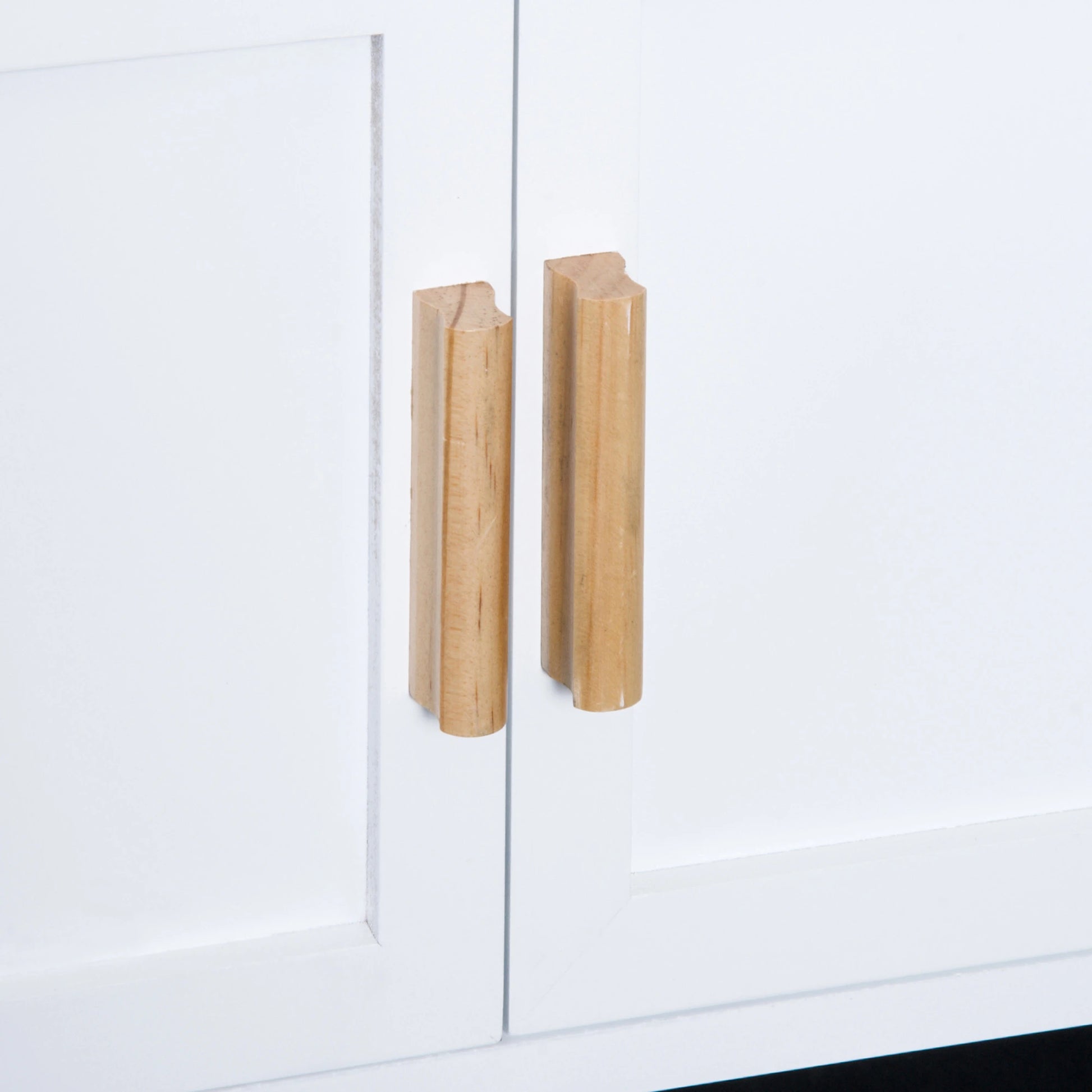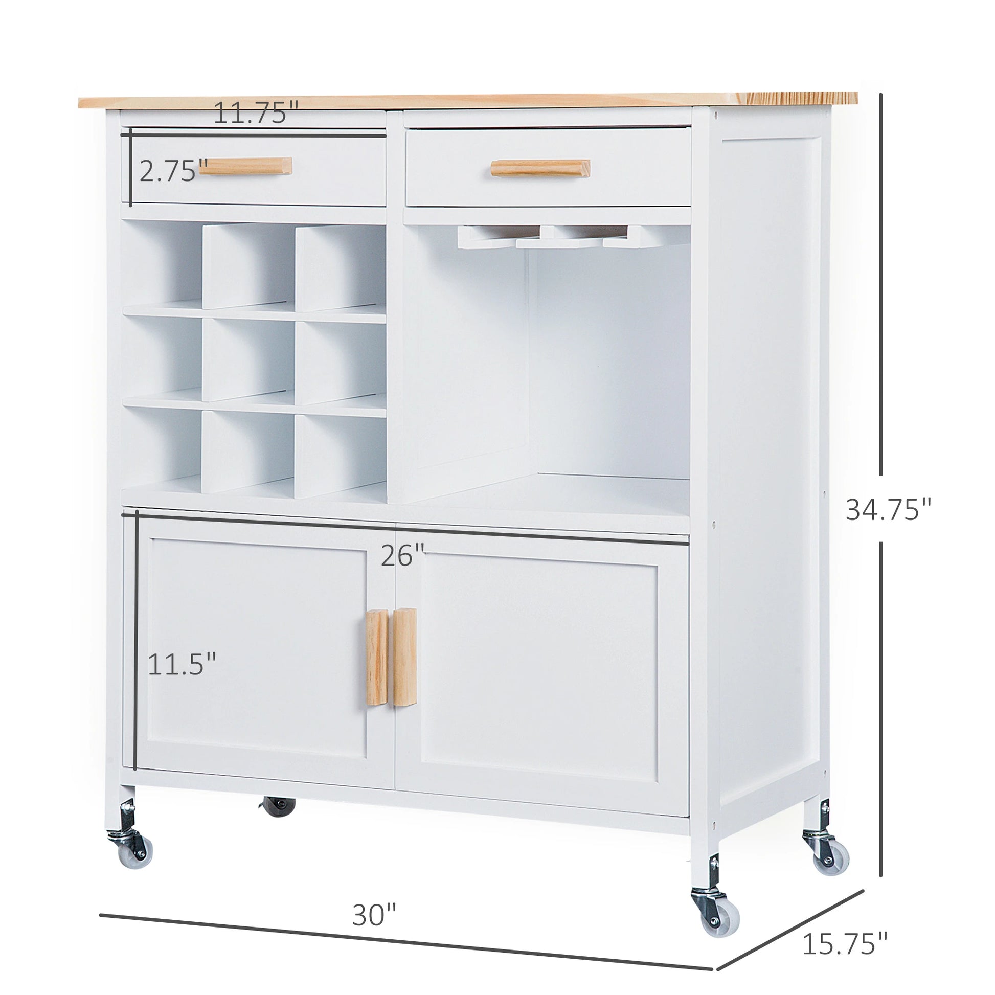 Portable Kitchen Trolley with Bamboo Top Storage Cabinet and Wine Rack (White)