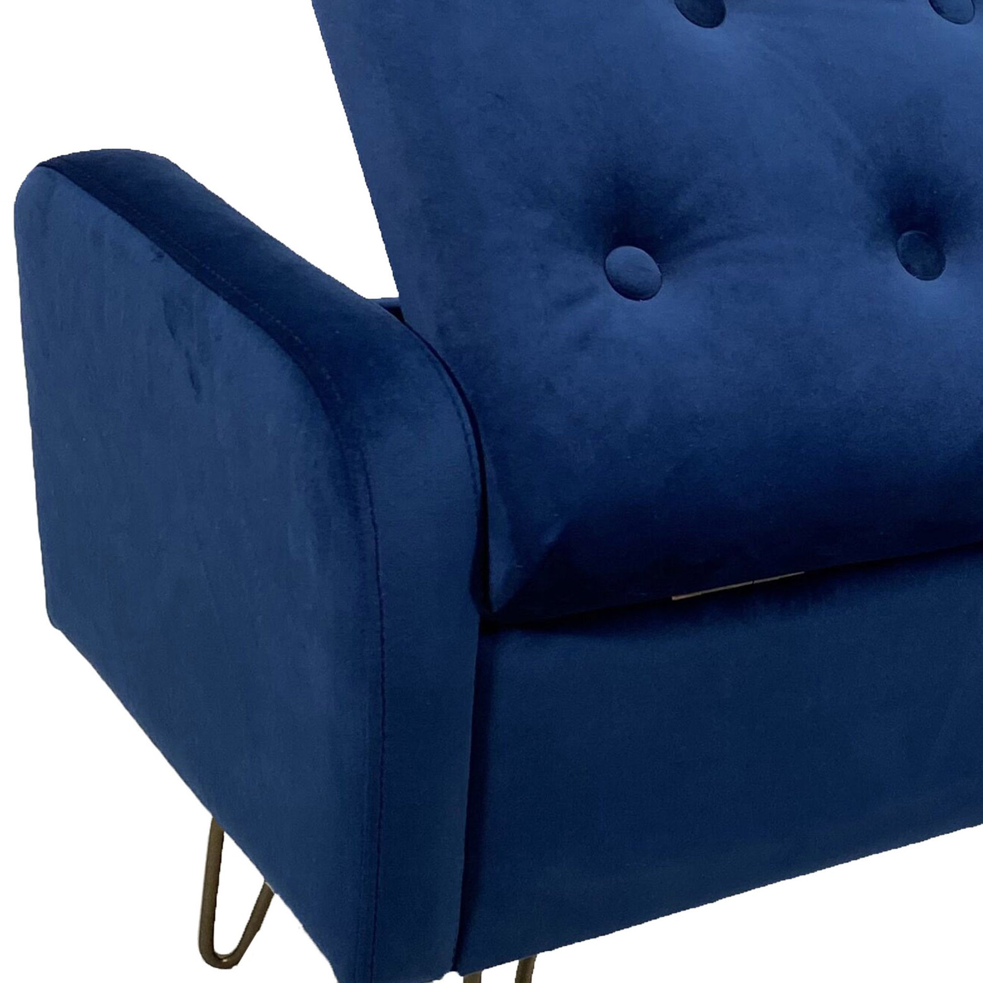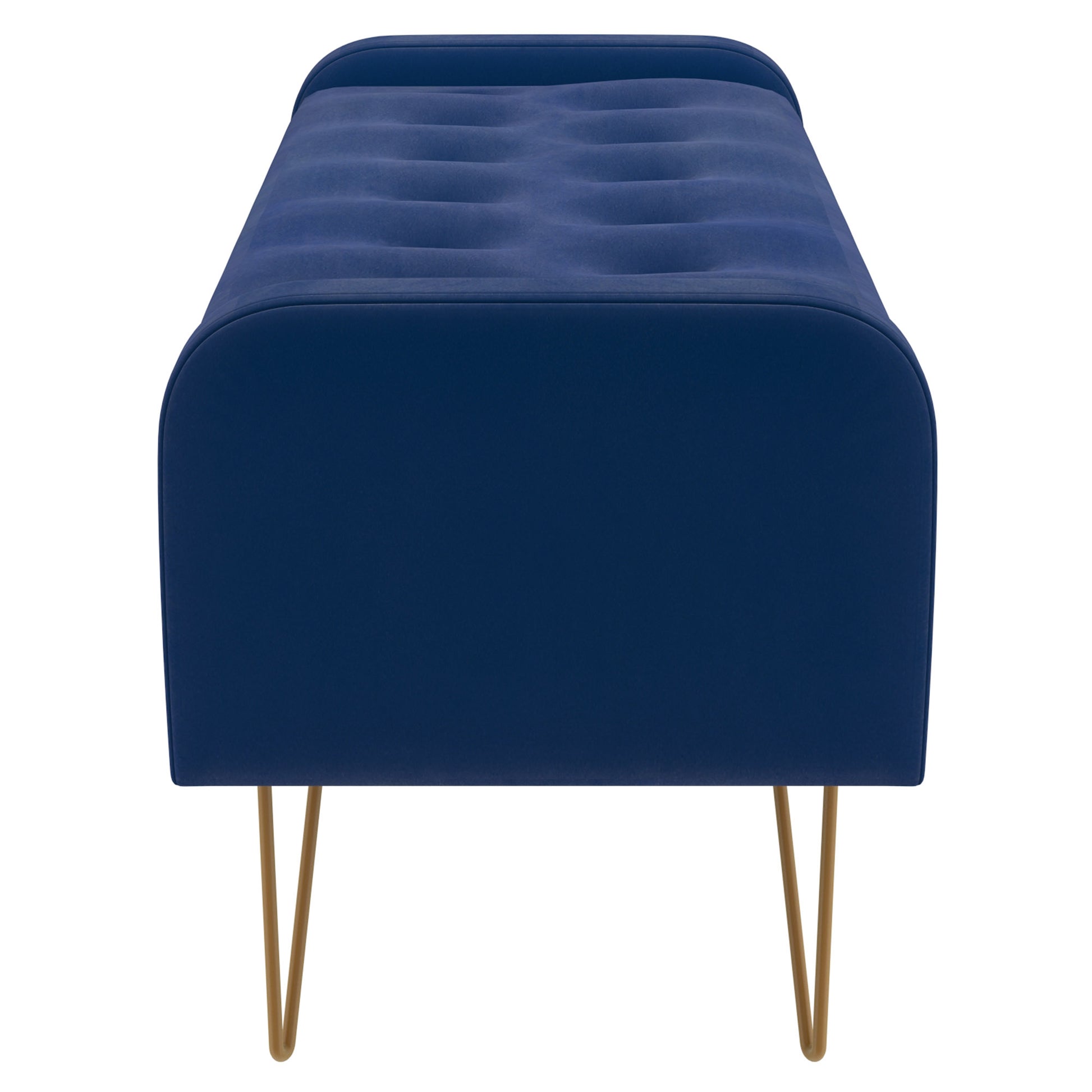 Storage can be sexy - and this ottoman gives you the best of both. A spacious storage compartment to stash away things like remotes and gaming controllers, and sleek hairpin metal legs that look great while providing sturdy support. The button tufting on the top and the aged gold finish on the legs are an added bonus that help make this piece a must-have. Great as an end-of-the-bed piece or in a hallway as well.