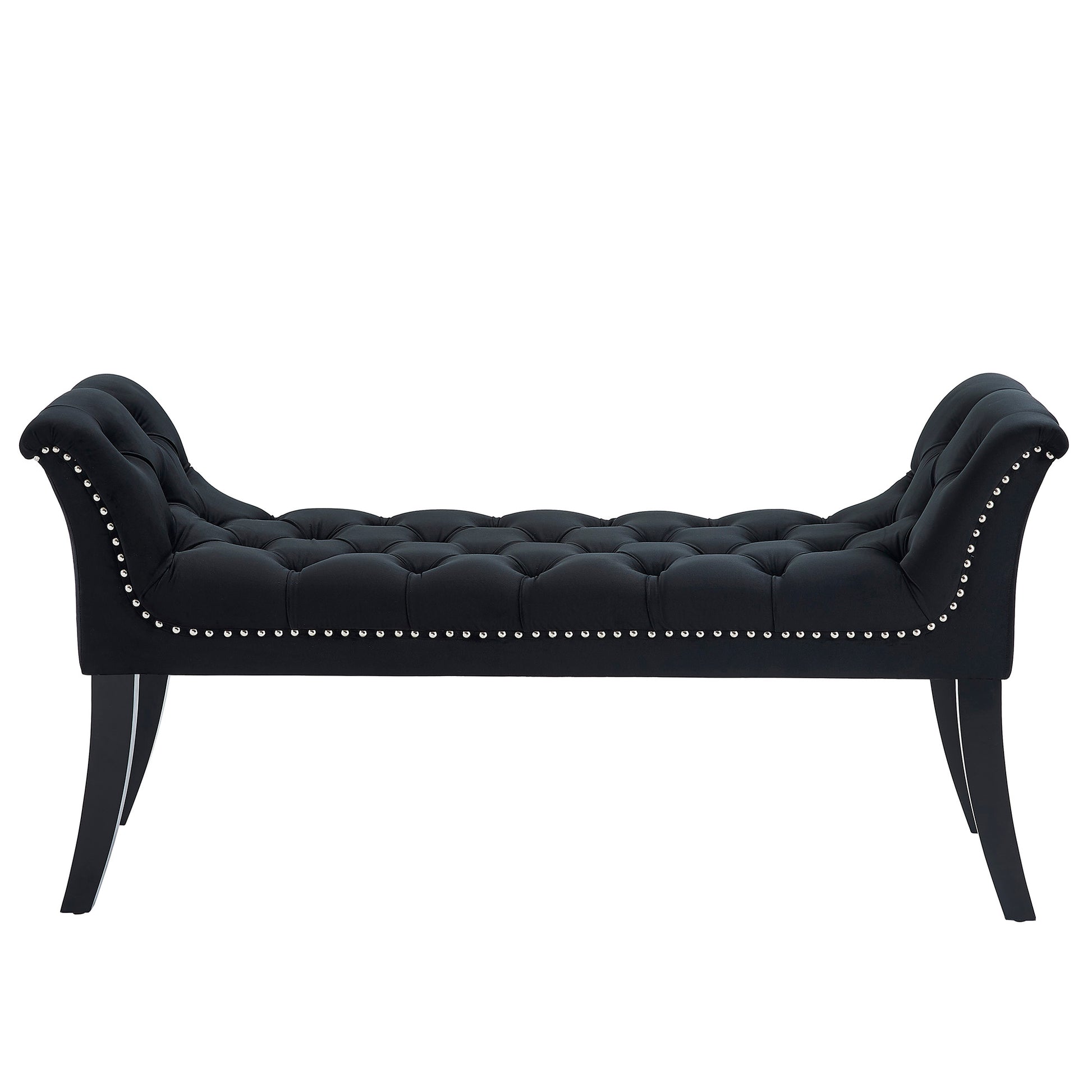 This sophisticated bench offers a high fashion look in your space. Finding its home in the bedroom, dressing room, home office, or sitting room, the rich colour and velvet upholstery allows it to pair with classic and elegantly styled home décor. As sturdy as it is beautiful, the solid frame of this bench will ensure you always have a comfortable place to lounge. The button tufting and silver nail head detailing are an added level of splendour.