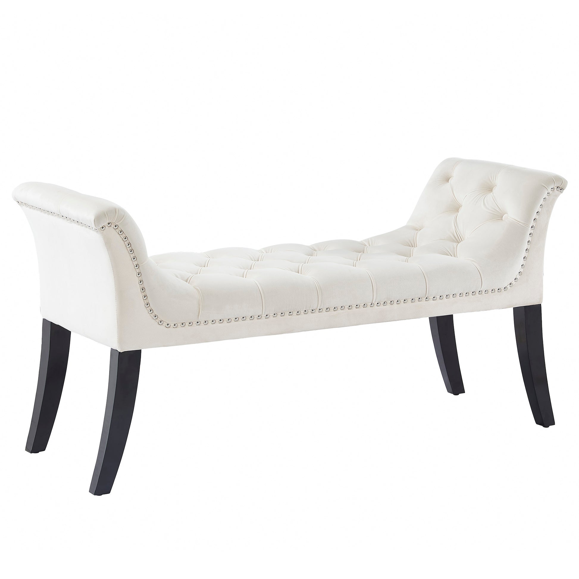This sophisticated bench offers a high fashion look in your space. Finding its home in the bedroom, dressing room, home office, or sitting room, the rich colour and velvet upholstery allows it to pair with classic and elegantly styled home décor. As sturdy as it is beautiful, the solid frame of this bench will ensure you always have a comfortable place to lounge. The button tufting and silver nail head detailing are an added level of splendour.